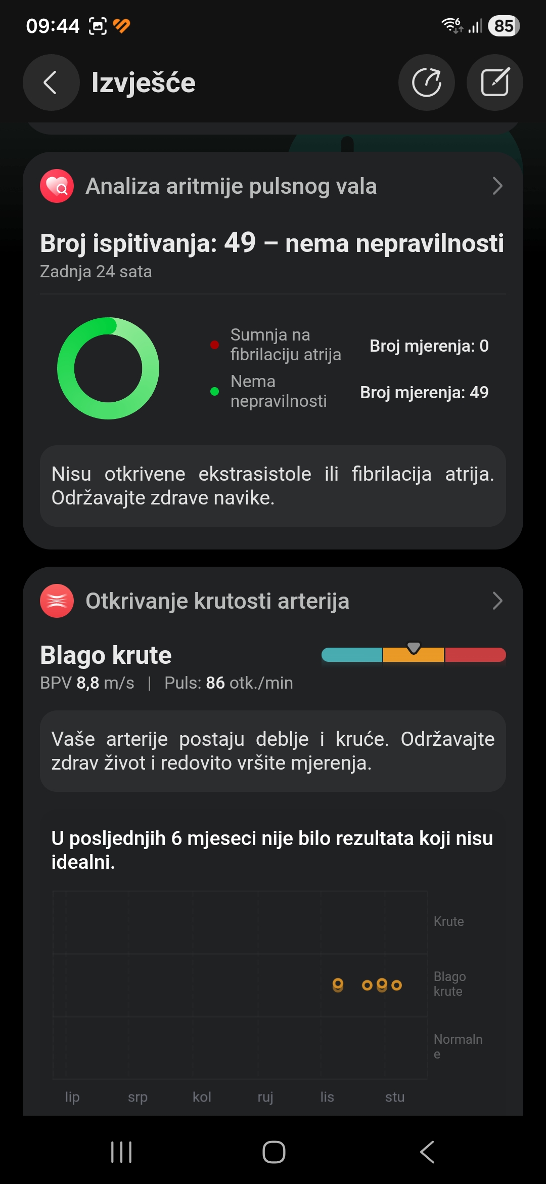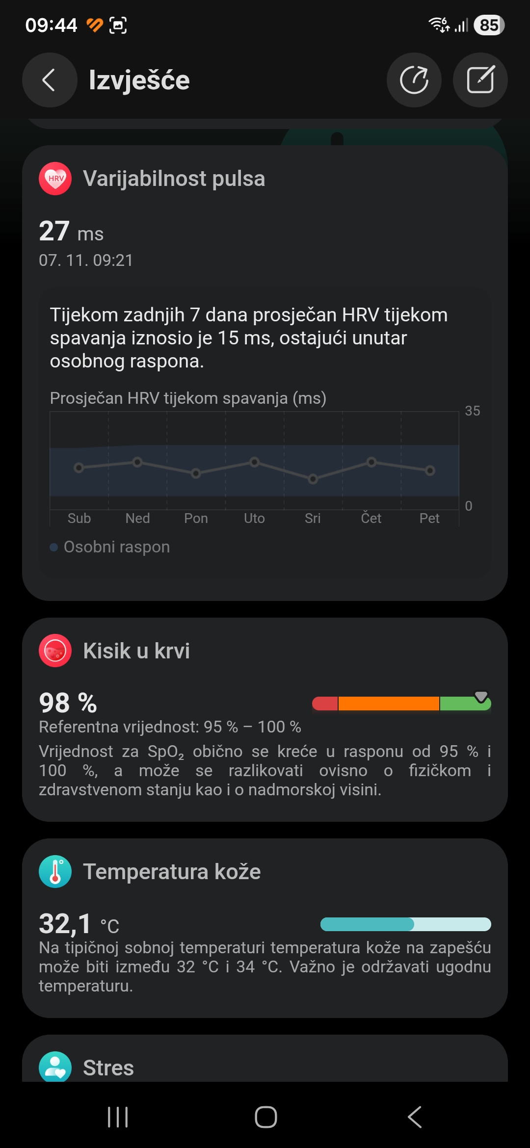Super mi je izvještaj o zdravlju, kojeg pokrećete stavljanjem prsta na senzor između tipku – vrlo pregledno i korisno.