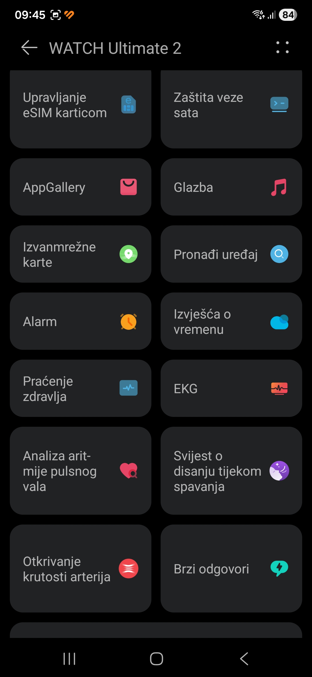 - Senzori: Akcelerometar, žiroskop, barometar, senzor pulsa, SpO₂, temperatura kože, ECG