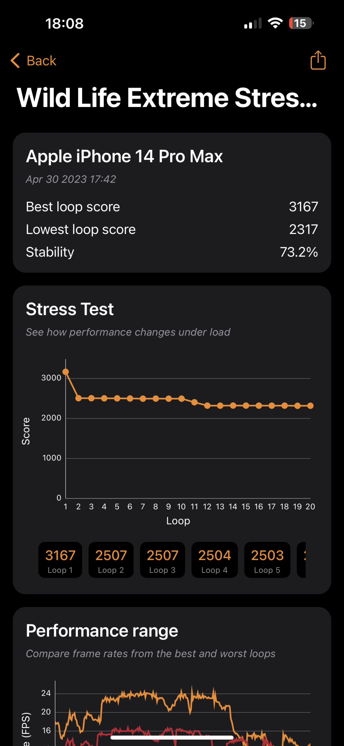 OK, dio zasluga ide smanjenim vršnim performansama dok je hladan – ali s 2914 bodova nakon 10 ciklusa Extreme testa bolji je i od iPhone 14 Pro Max!