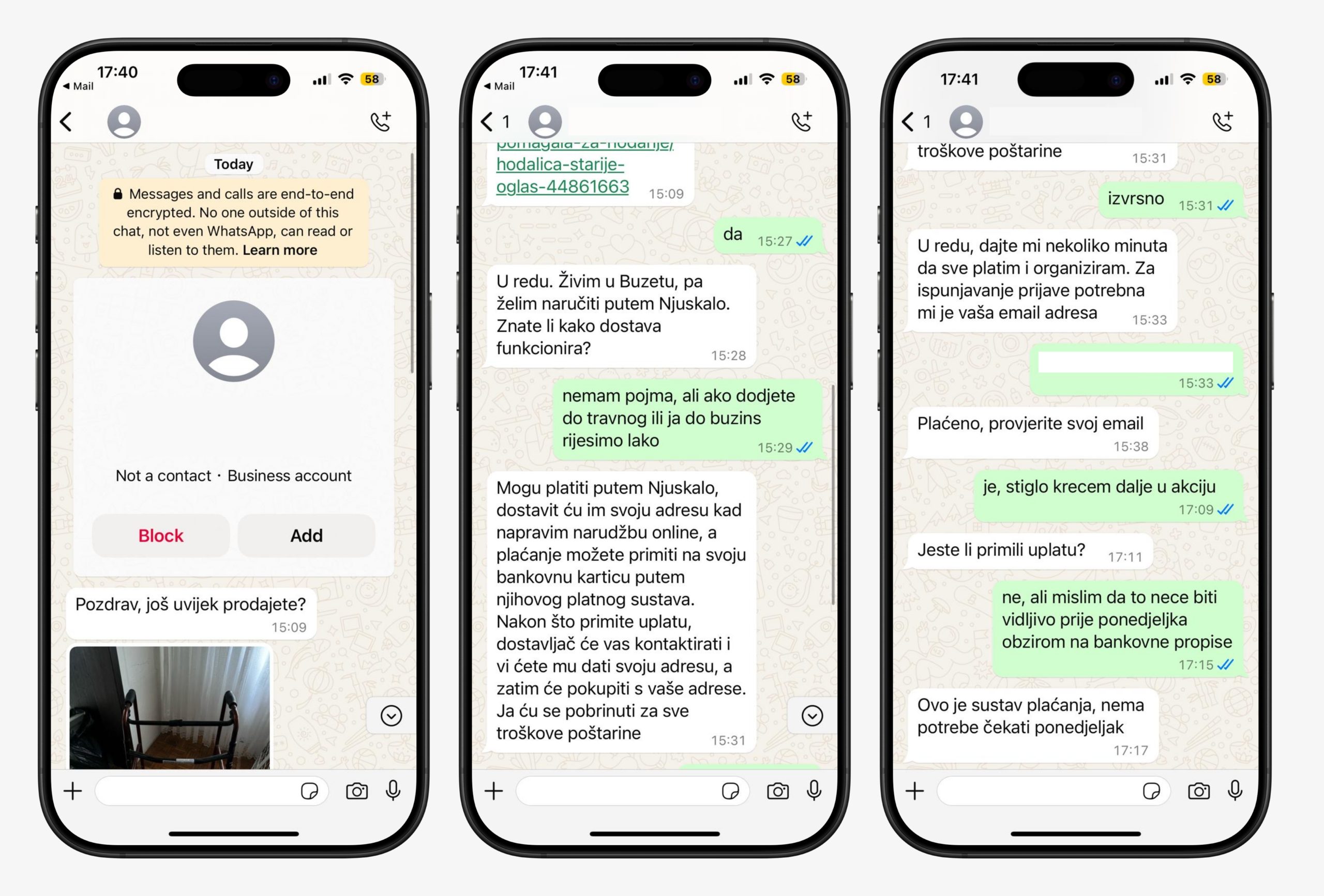 Važno je naglasiti da Njuškalo nikada ne kontaktira korisnike putem SMS-a, Vibera, WhatsAppa ili sličnih aplikacija. Također, Njuškalo nikada ne traži sigurnosne kodove, verifikacijske brojeve niti bilo kakve osjetljive podatke putem telefona, poruka ili e-maila. Svaka poruka koja odstupa od tih pravila mora se smatrati sumnjivom.