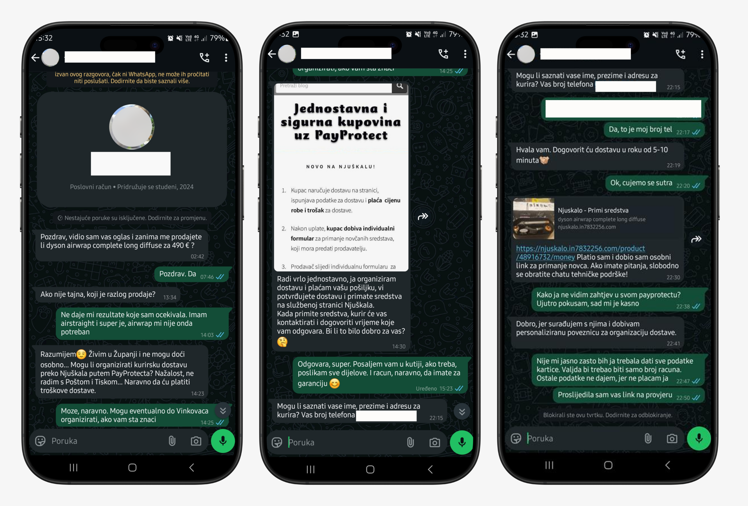 U posljednje vrijeme bilježe se pokušaji prijevare koji se šire putem vanjskih komunikacijskih platformi. U tim slučajevima nepoznate osobe lažno se predstavljaju kao Njuškalo. Njihov glavni cilj je neovlašteno prikupljanje osobnih podataka te preuzimanje korisničkih računa na drugim komunikacijskim servisima. Takve poruke često izgledaju uvjerljivo, no sadrže jasne znakove prijevare.