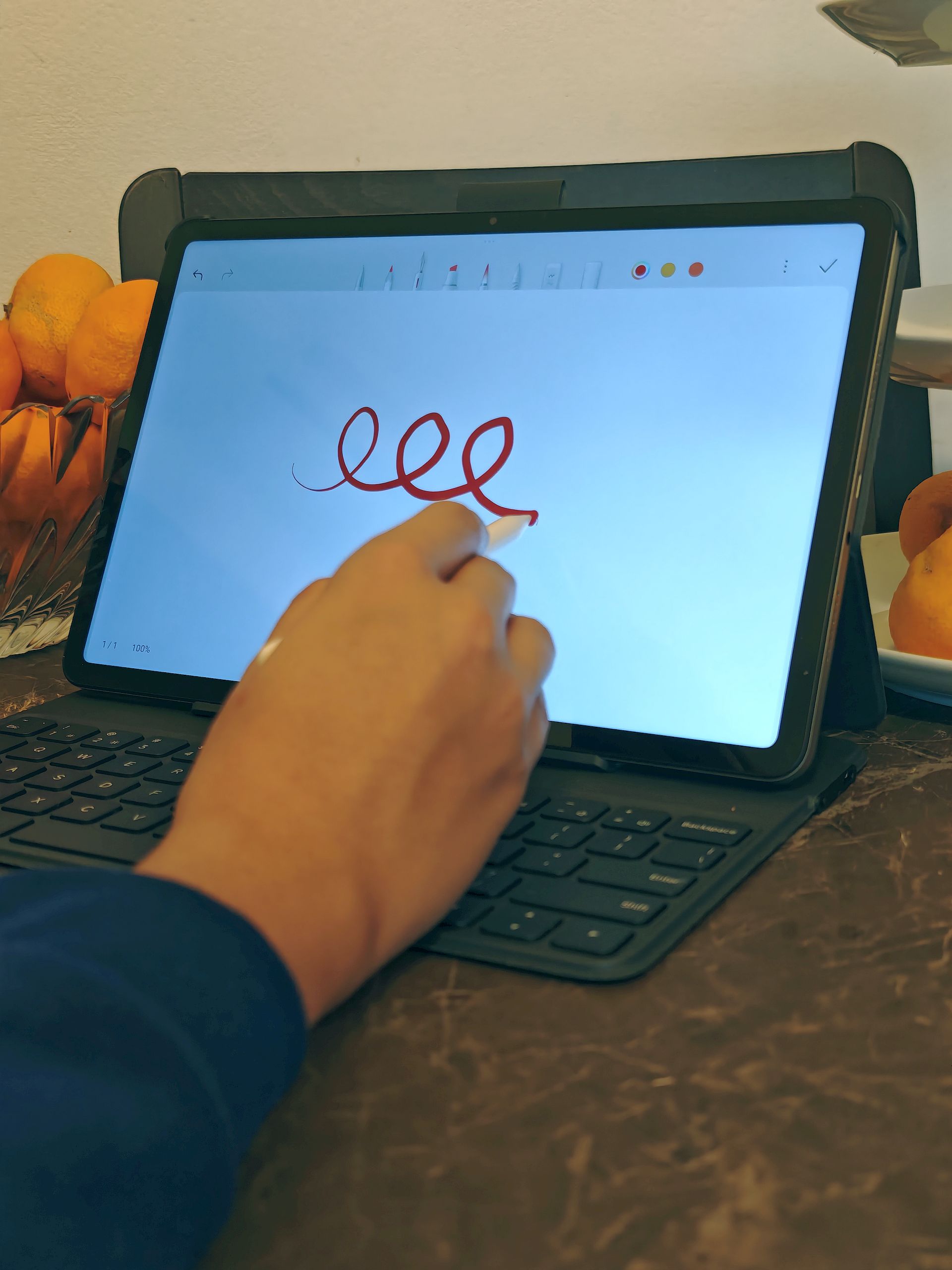 Stylus olovka funkcionira bez greške, s brzim odzivom i minimalnim kašnjenjem. Nije namijenjena profesionalnom crtanju, ali za bilješke i skiciranje radi odlično.