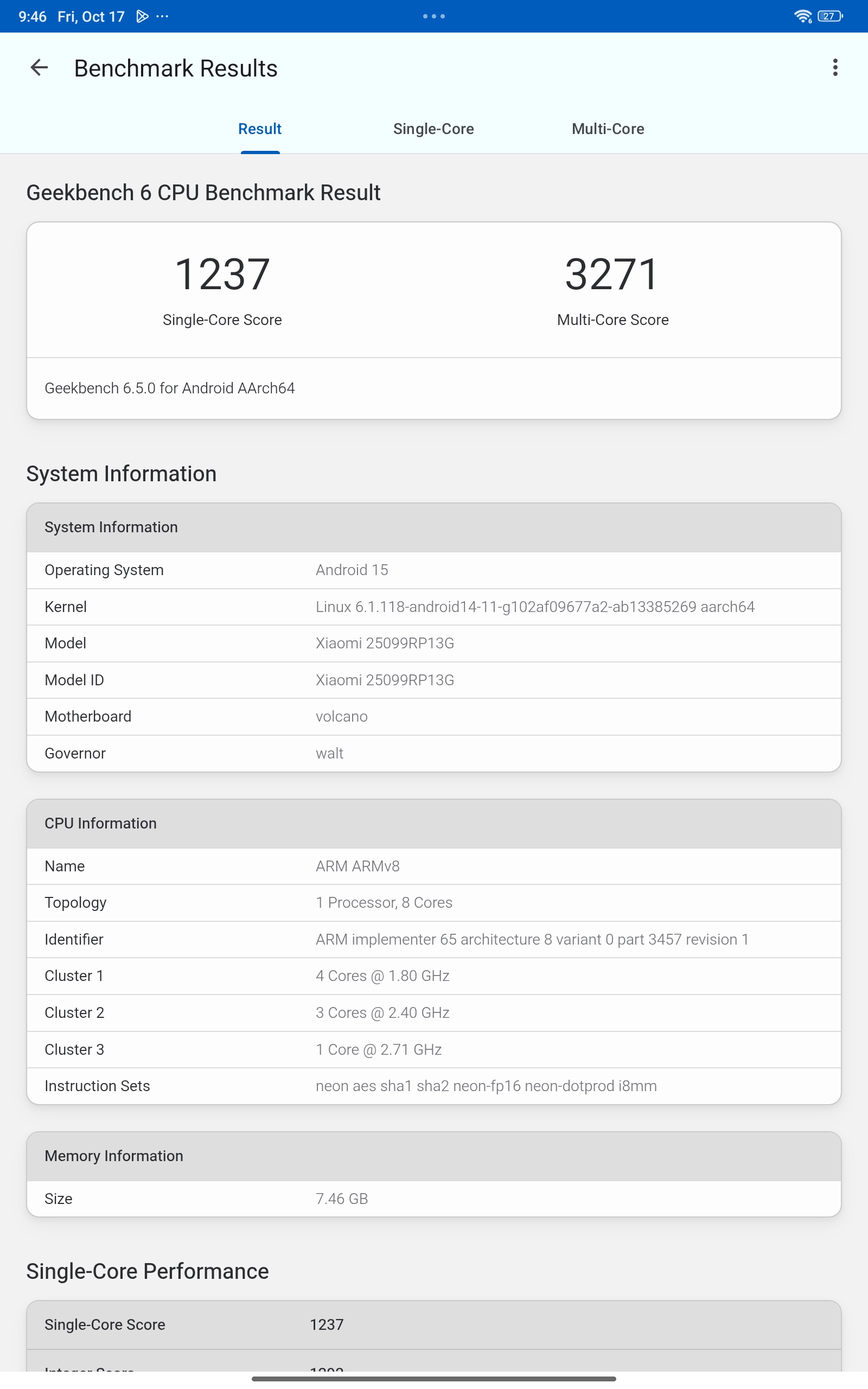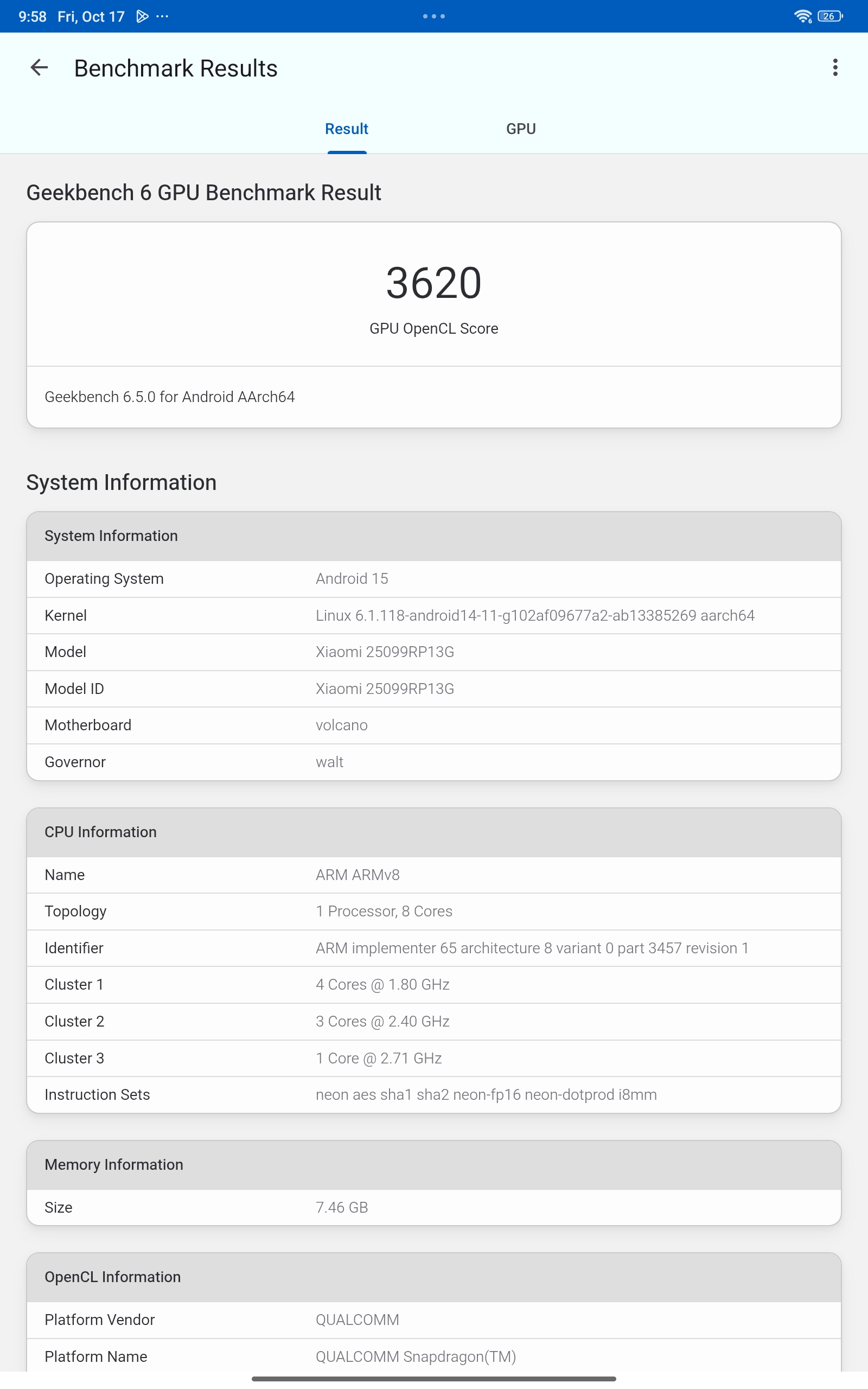 - Procesor (čipset): Qualcomm Snapdragon 7s Gen 4 (4 nm), CPU: 8-jezgreni (4×2.4 GHz + 4×1.9 GHz), GPU: Adreno (integrirani, podržava Vulkan i OpenGL ES 3.2)