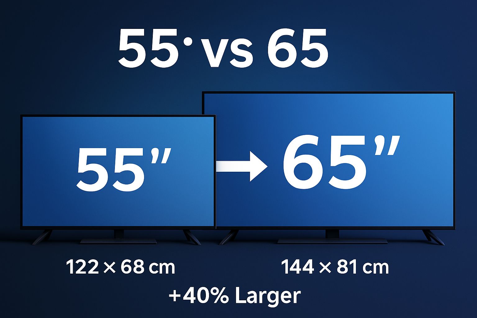 65″ je ≈40% veći po površini od 55″.